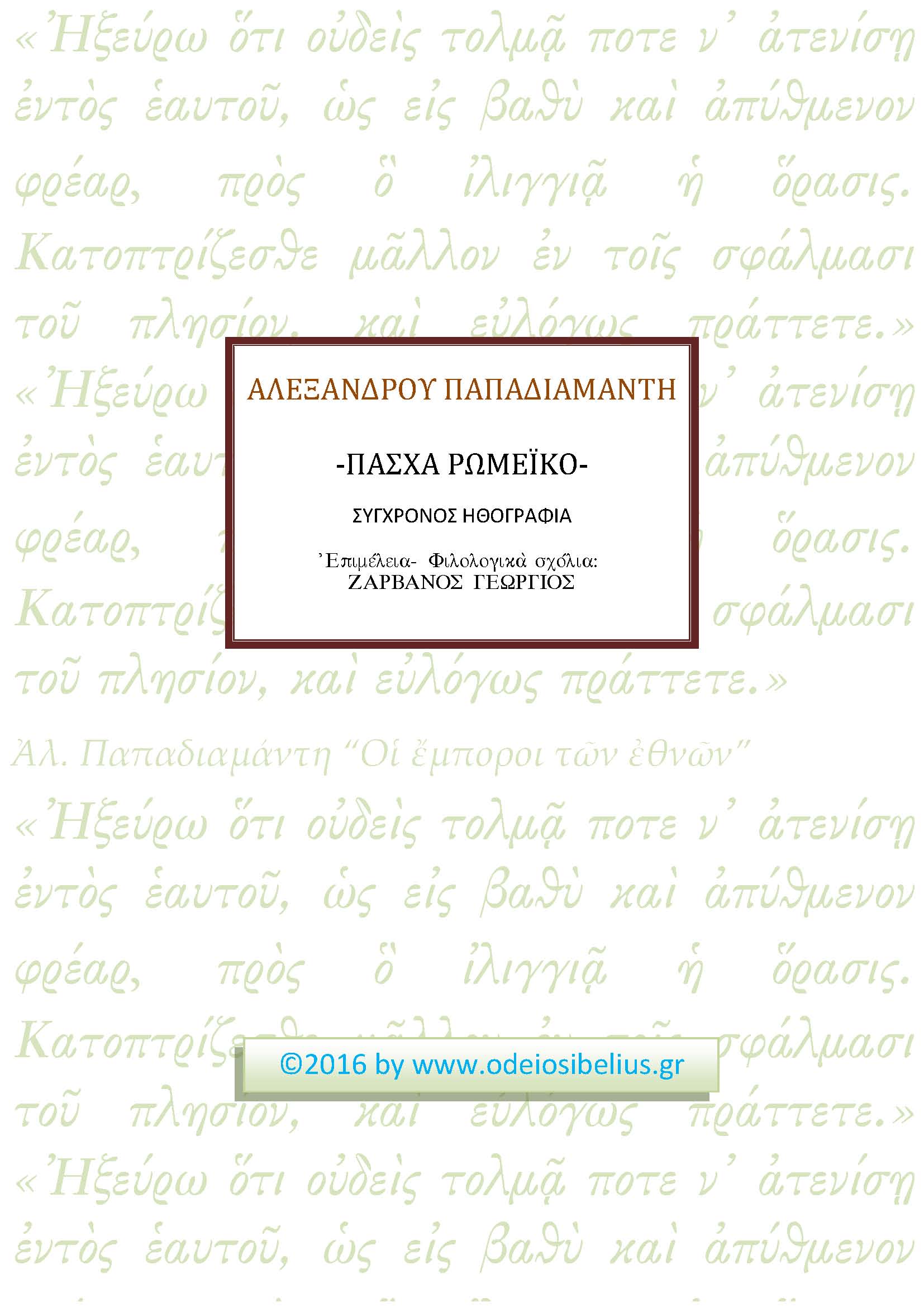 (Ἕνας ἐναλλακτικὸς τρόπος τοῦ νὰ διαβάζῃ κάποιος ἐκ τοῦ πρωτοτύπου Ἀ. Παπαδιαμάντη...)